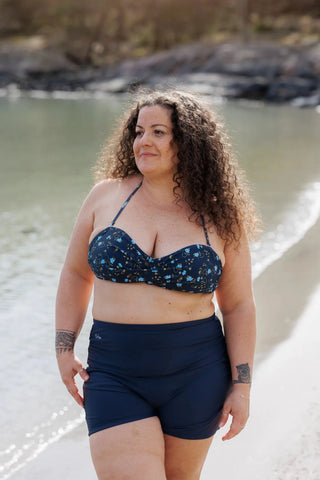 Hipster underdel sydd med elastiske sømmer for at bikinien kan til tilpasses best mulig kroppen uten å stramme. Masse stretch og hold. Fungerer også utmerket for gravide da stoffet er veldig bevegelig samtidig som den gir en hold in effekt. Elastisk scrunch på begge sider for å skape nydelige detaljer i stoffet.