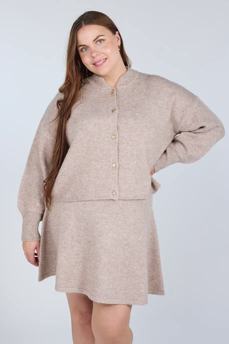 Cardigan i samme kolleksjon passer perfekt til dette skjørtet.