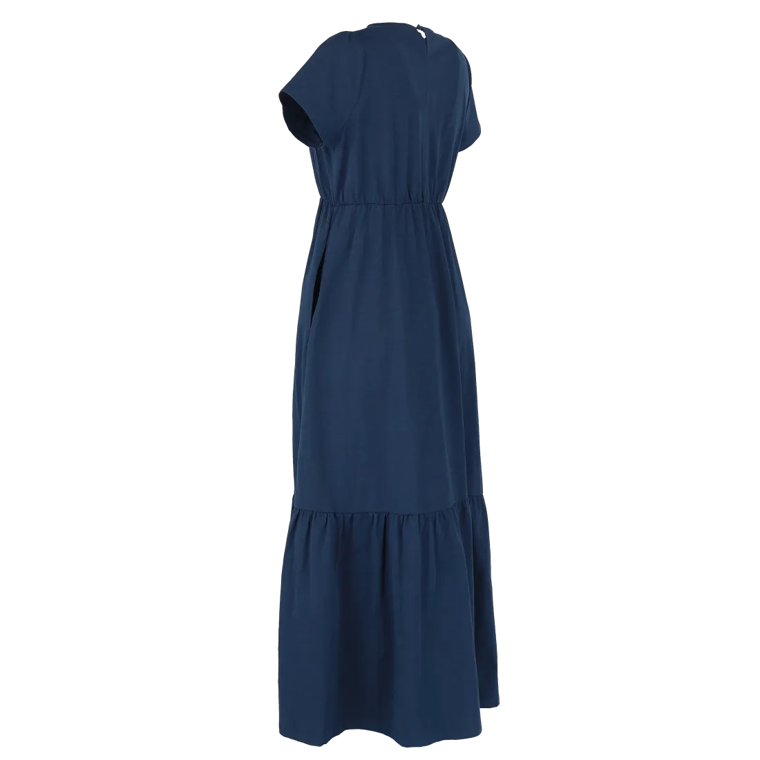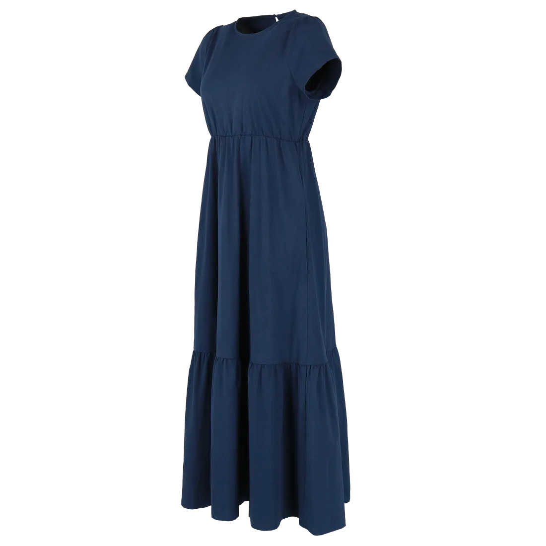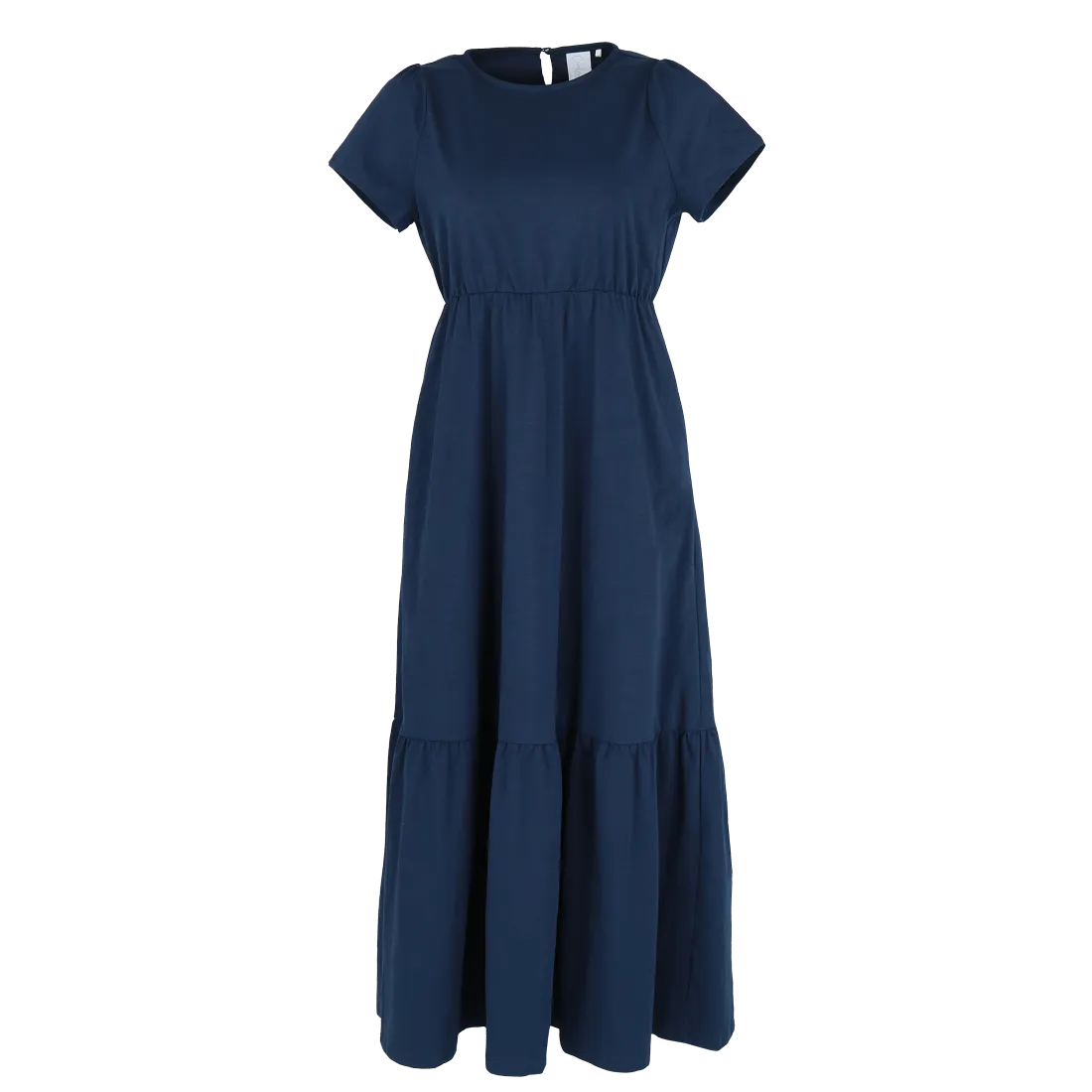 Denne maxikjolen har en avslappet og feminin stil, passer så godt til både hverdagsbruk og uformelle anledninger. Den er myk og behagelig, som gir en luftig og komfortabel følelse gjennom hele dagen. Kjolen har korte ermer, rund hals og en innsvinget midje med strikk som fremhever figuren på en naturlig måte. Den lange skjørtedelen avsluttes med en bred volang som gir ekstra bevegelse og en flatterende passform.