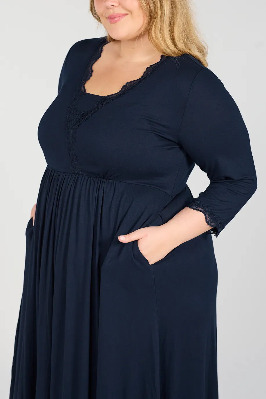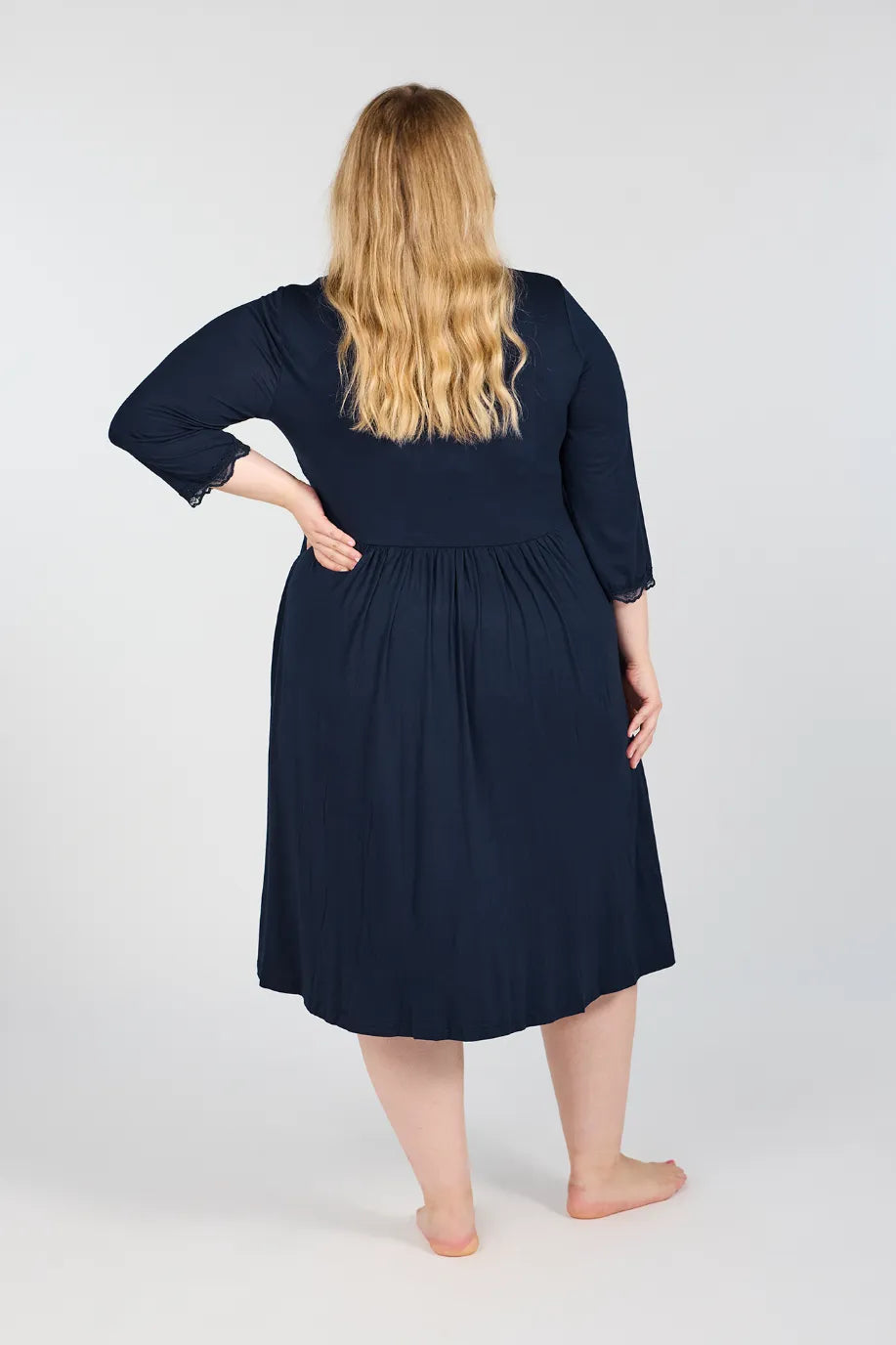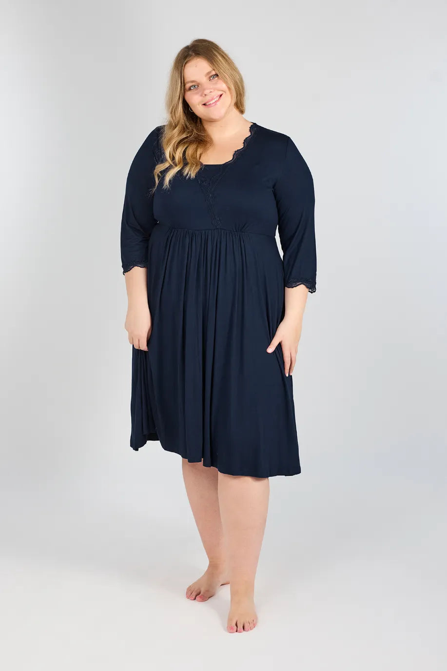 Tora nattkjole er supermyk og behagelig, perfekt for rolige kvelder og late morgener. Den er laget i myk viskose med fine blondedetaljer i samme farge som stoffet. En komfortabel og feminin nattkjole som også passer for gravide og ammende.