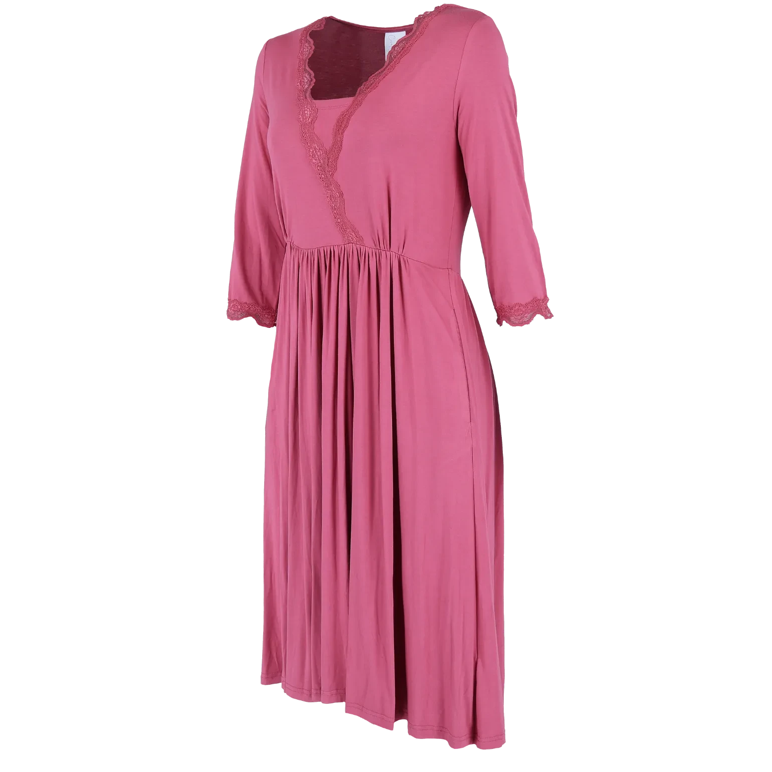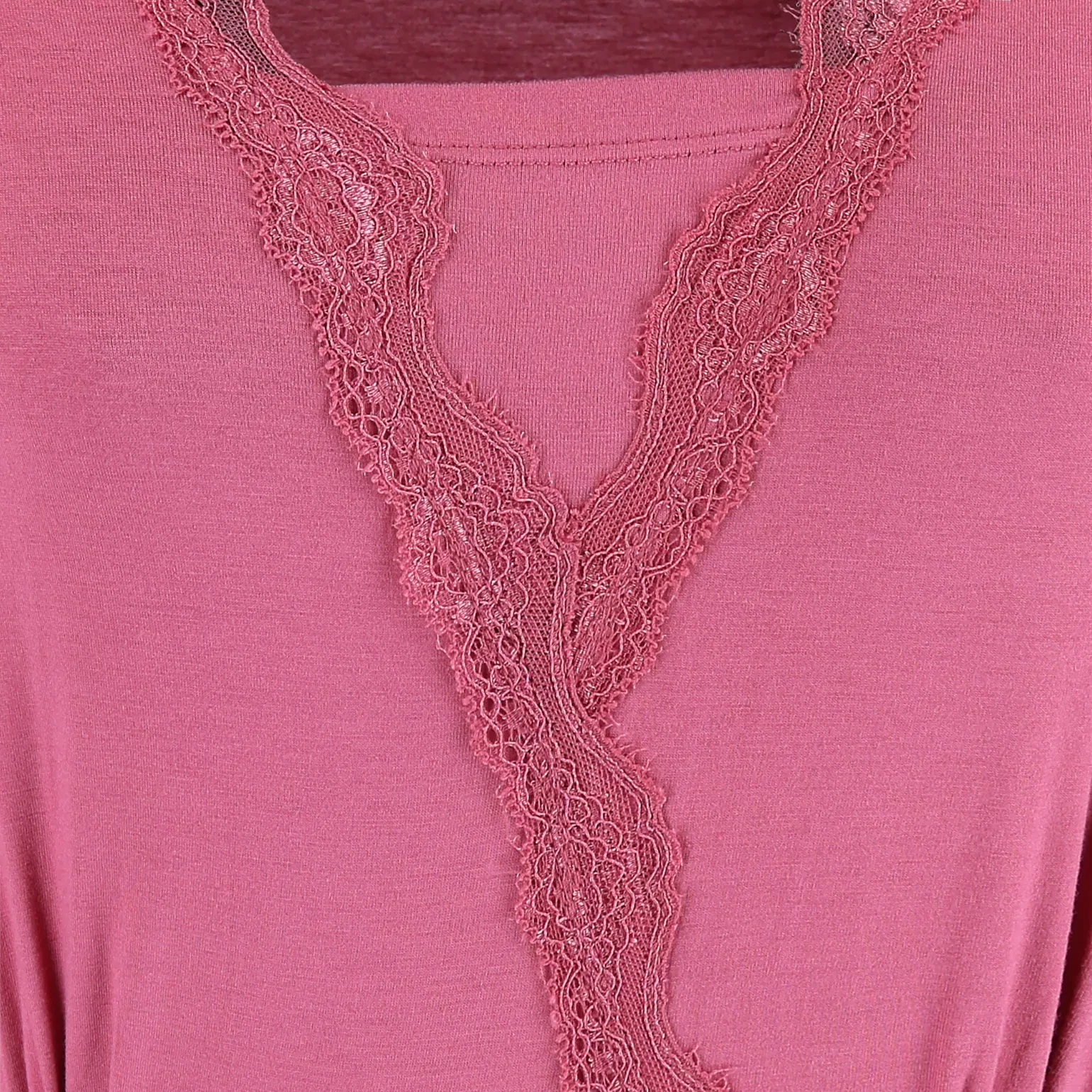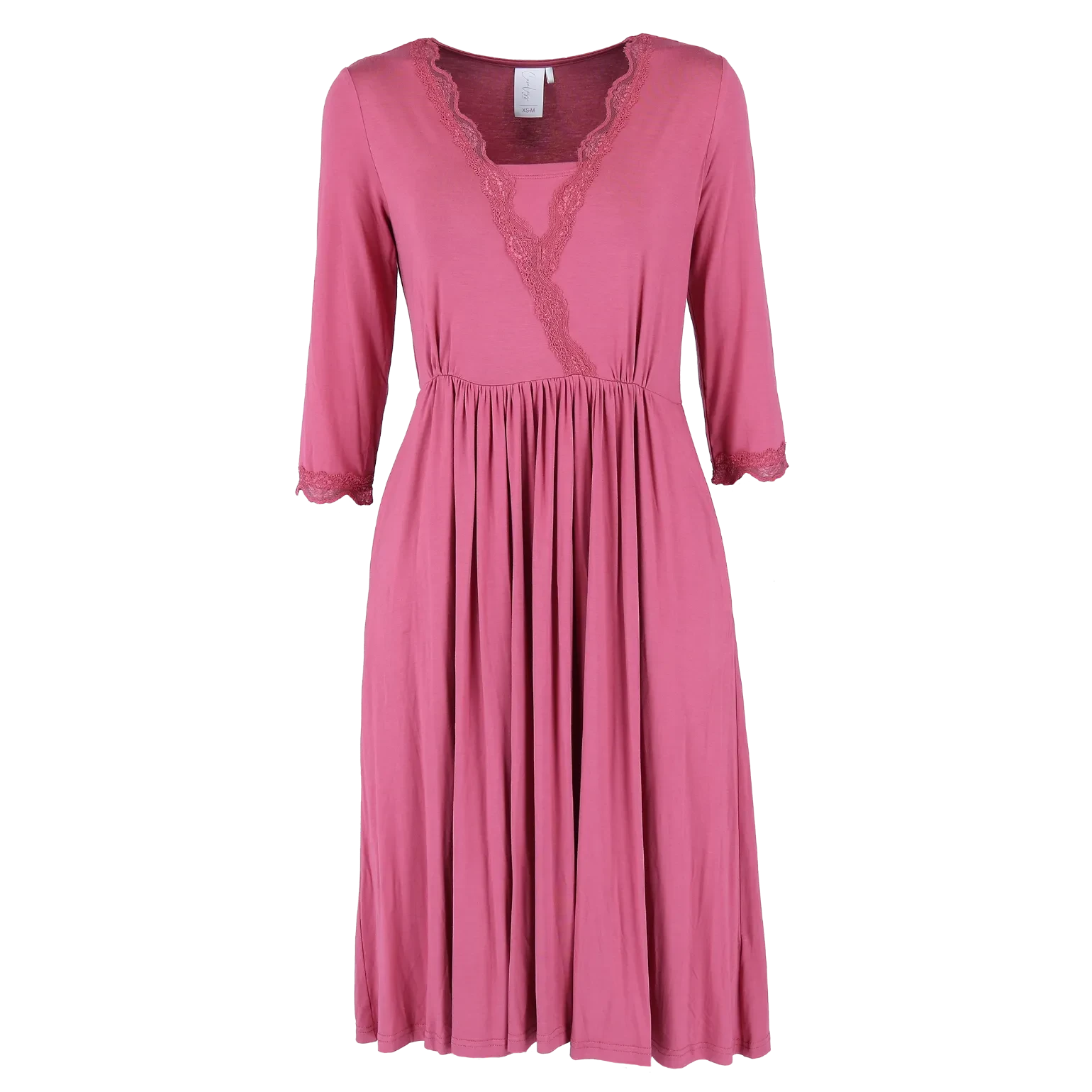 Tora nattkjole er supermyk og behagelig, perfekt for rolige kvelder og late morgener. Den er laget i myk viskose med fine blondedetaljer i samme farge som stoffet. En komfortabel og feminin nattkjole som også passer for gravide og ammende.