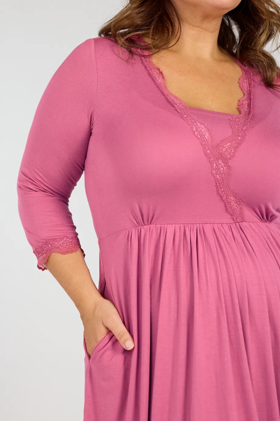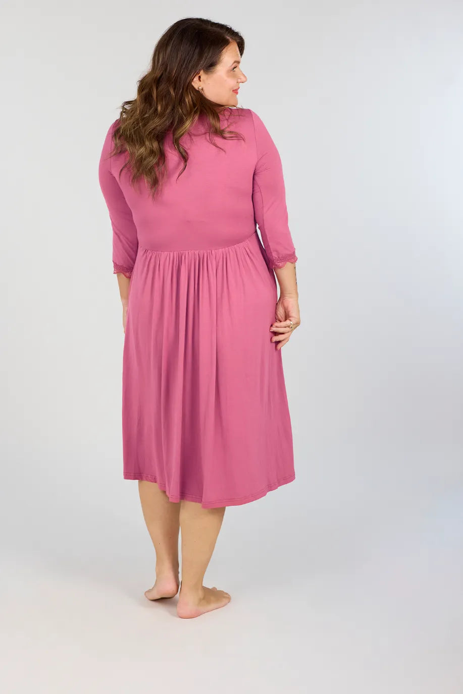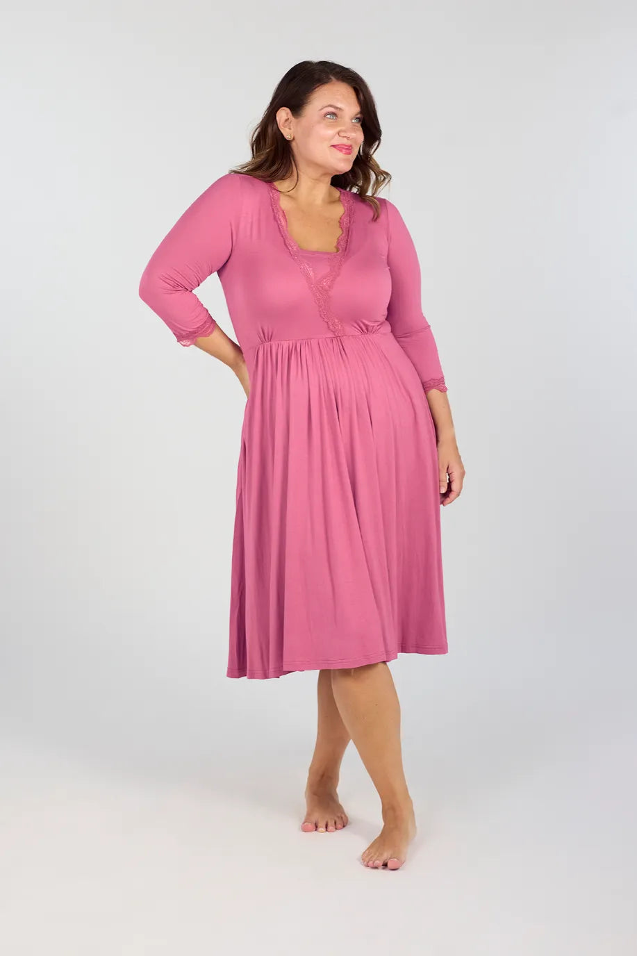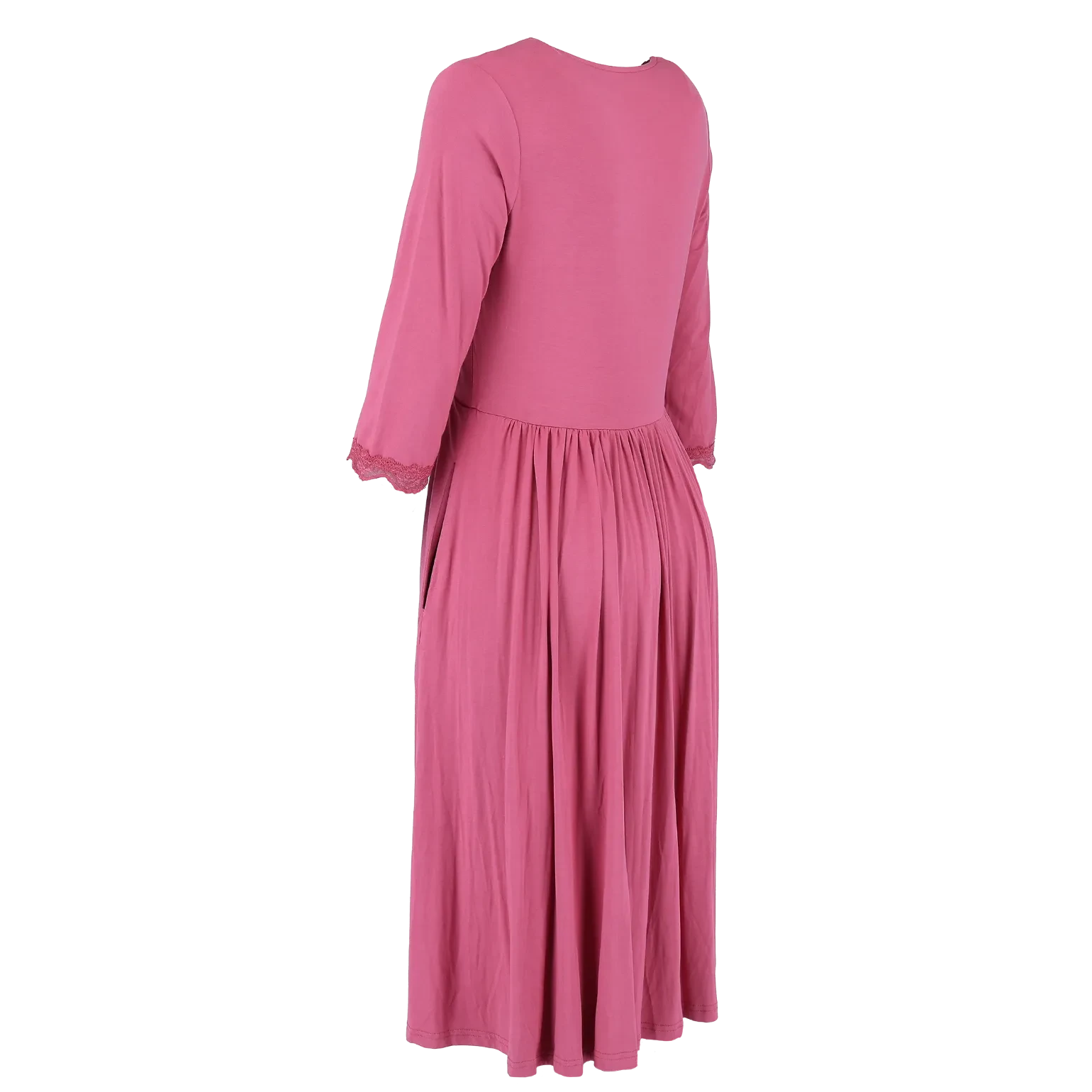 Tora nattkjole er supermyk og behagelig, perfekt for rolige kvelder og late morgener. Den er laget i myk viskose med fine blondedetaljer i samme farge som stoffet. En komfortabel og feminin nattkjole som også passer for gravide og ammende.