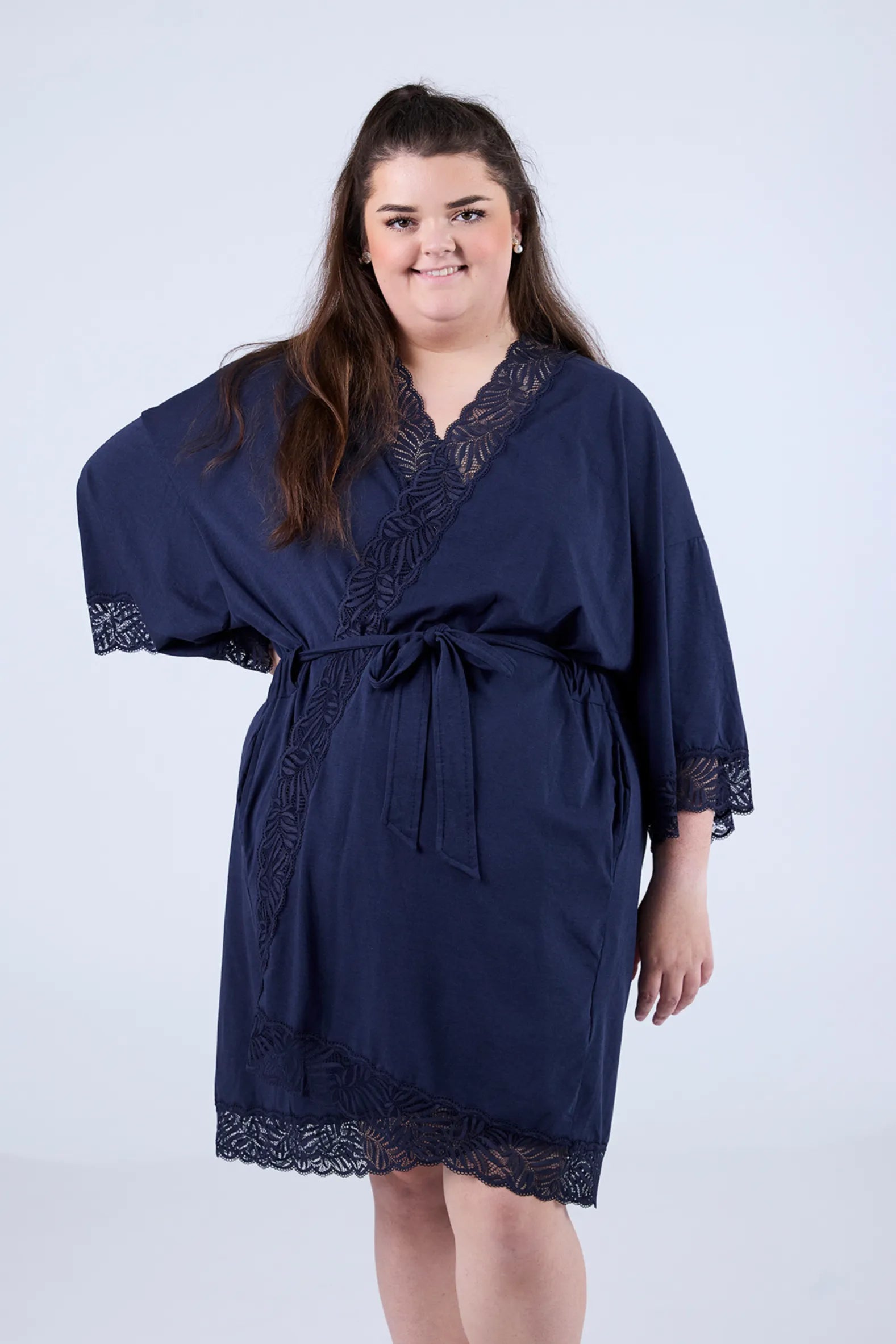 Den nydelige kimonoen er myk og behagelig mot huden, samtidig som at den ikke krøller seg lett og holder seg pen.