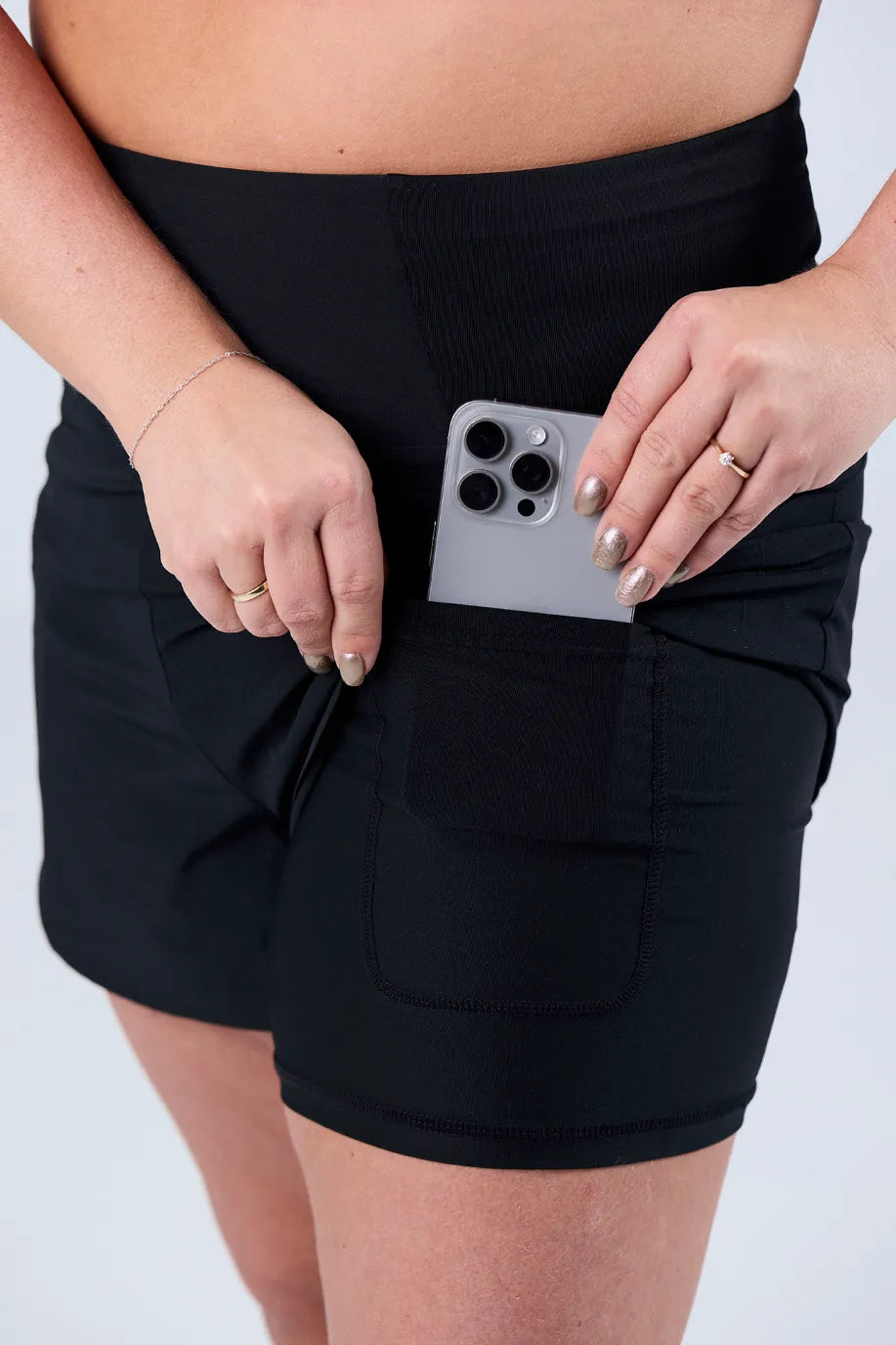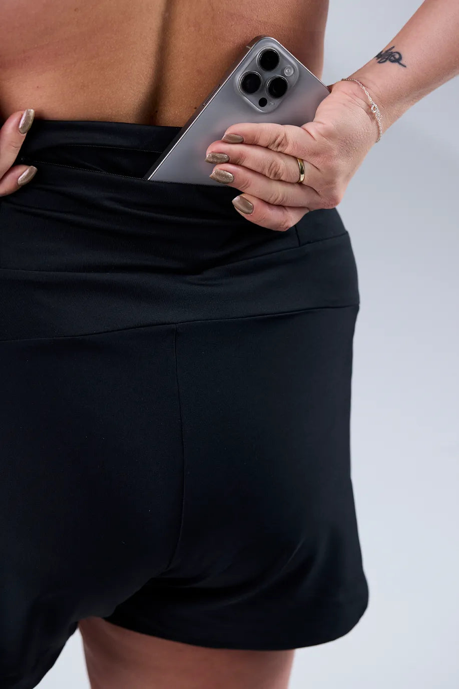 Komfortabel og funksjonell treningsshorts med innebygd tights. Den har høy, elastisk midje med snøring for perfekt passform og et lett, pustende ytterstoff som gir god bevegelighet. Praktiske lommer på innsiden av tightsen og bak i linningen til småting som nøkler eller kort.