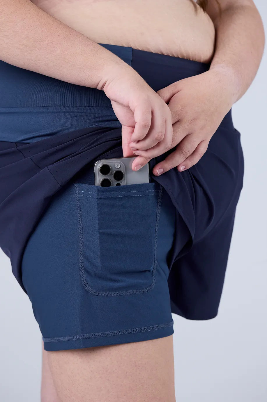 Komfortabel og funksjonell treningsshorts med innebygd tights. Den har høy, elastisk midje med snøring for perfekt passform og et lett, pustende ytterstoff som gir god bevegelighet. Praktiske lommer på innsiden av tightsen og bak i linningen til småting som nøkler eller kort.