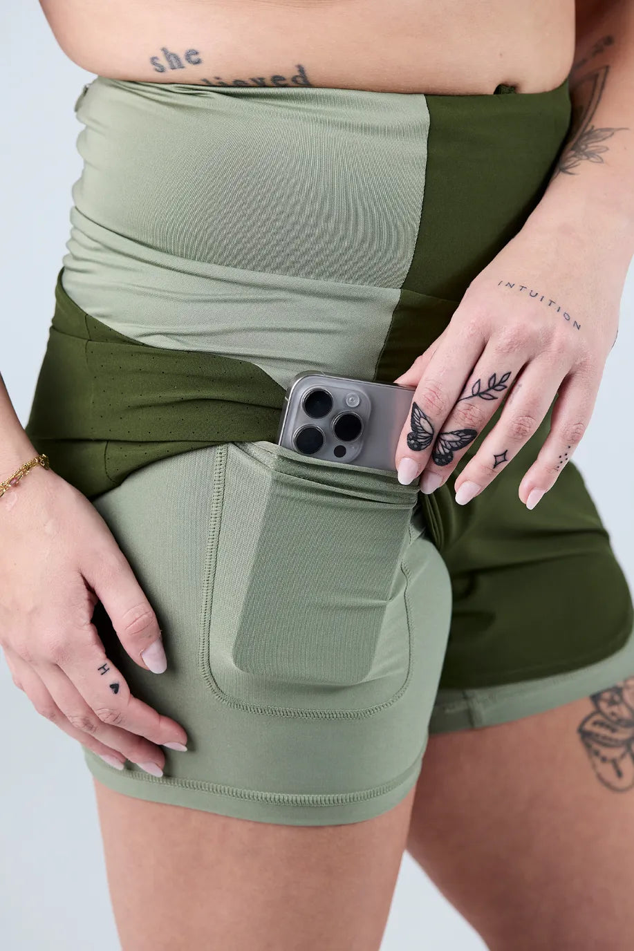 Komfortabel og funksjonell treningsshorts med innebygd tights. Den har høy, elastisk midje med snøring for perfekt passform og et lett, pustende ytterstoff som gir god bevegelighet. Praktiske lommer på innsiden av tightsen og bak i linningen til småting som nøkler eller kort.