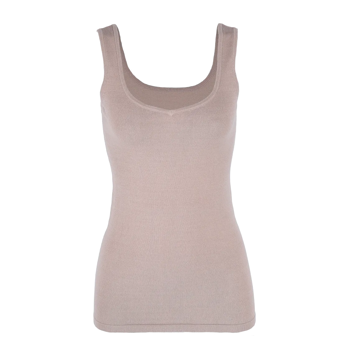 Designet med brede stropper og en feminin utringning som gjør den like fin alene som under andre plagg. Et anvendelig baseplagg du kan bruke året rundt.