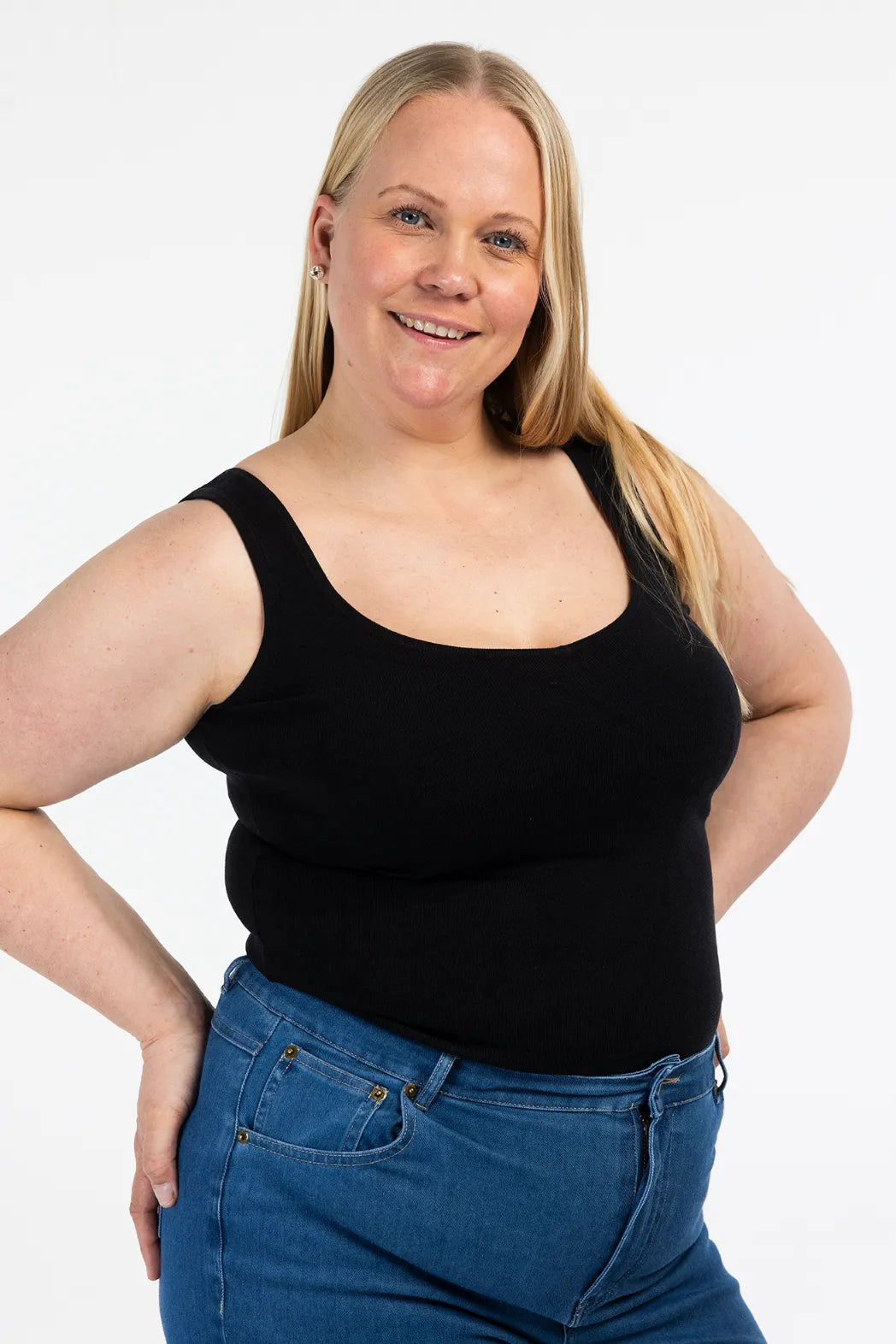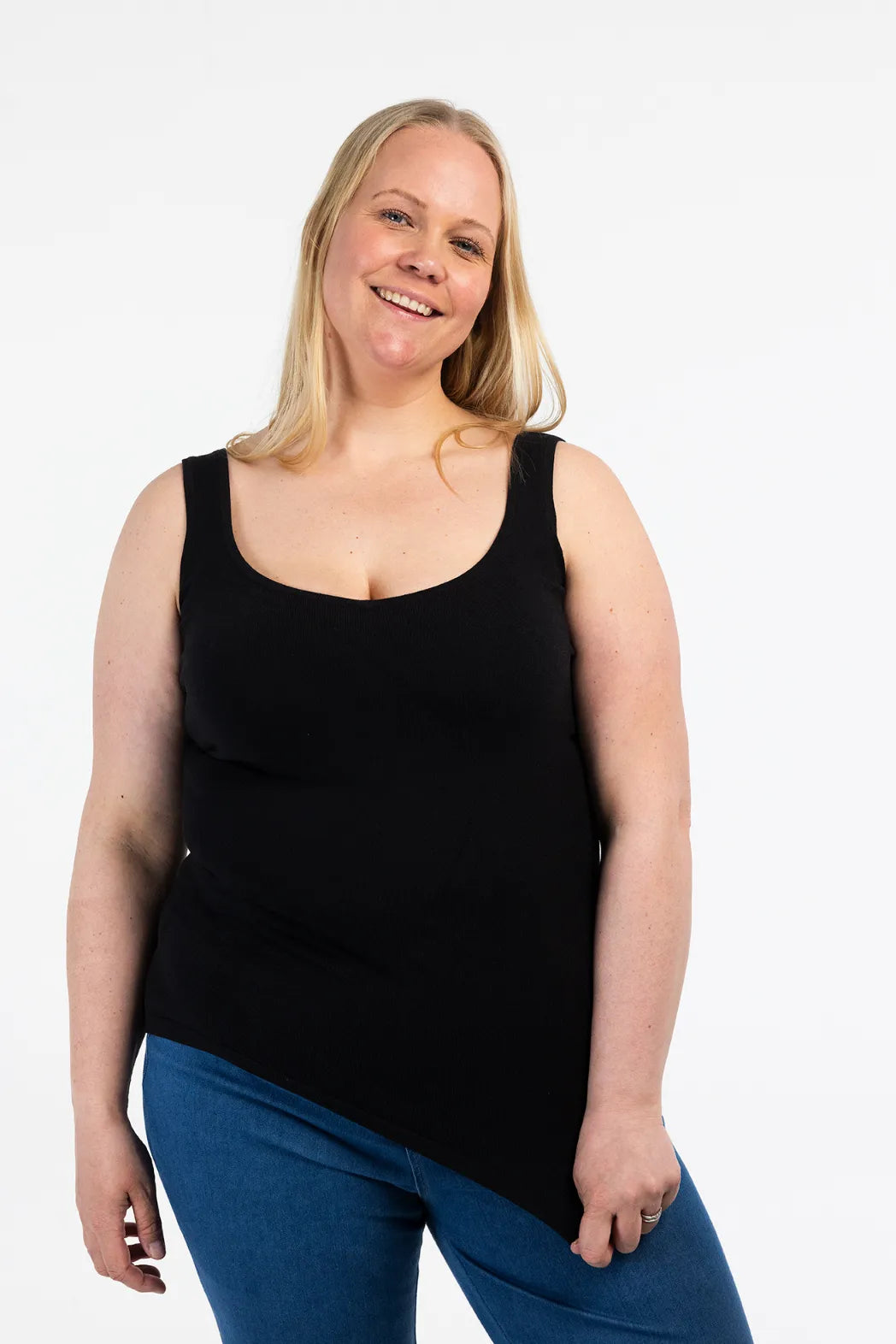 En komfortabel og flatterende singlet med lengre passform. Den sitter fint på kroppen uten å stramme, og det myke, stretchy materialet gir en behagelig følelse hele dagen.