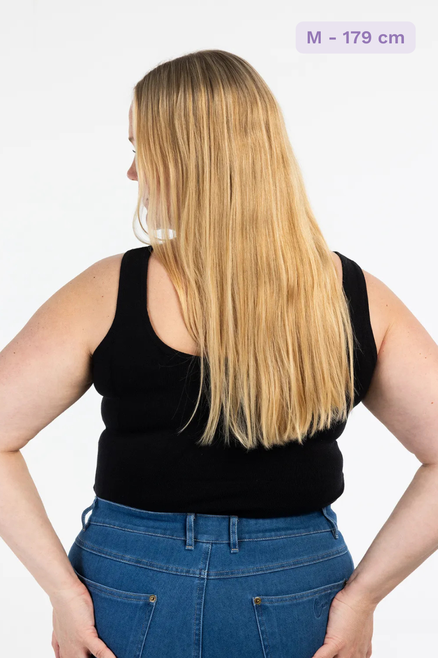 Modell i studio har str M og er 179 cm.
