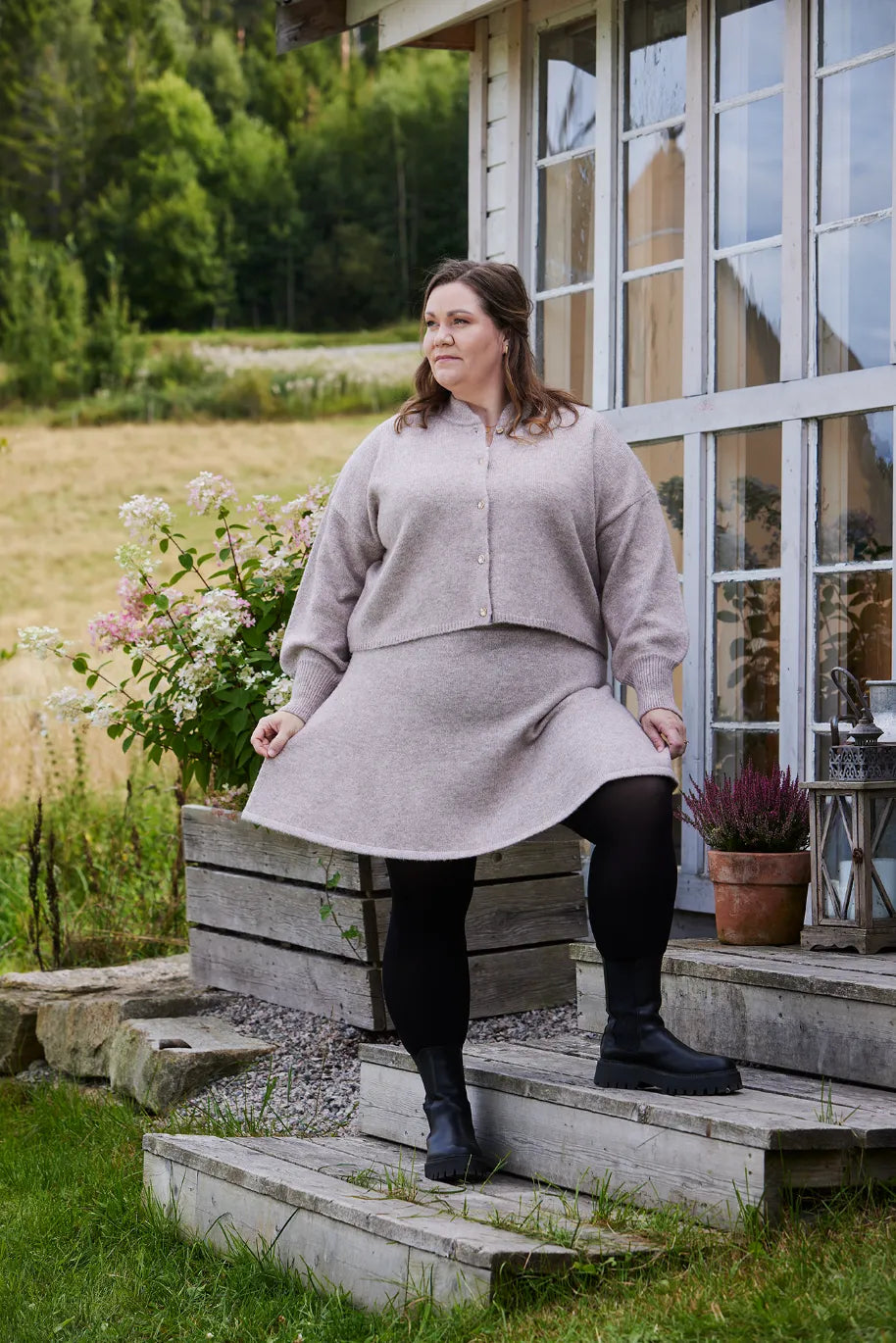 A-line skjørtet i samme kolleksjon passer perfekt til denne cardiganen. Kan også styles med kjoler, bukser, jeans og andre skjørt.