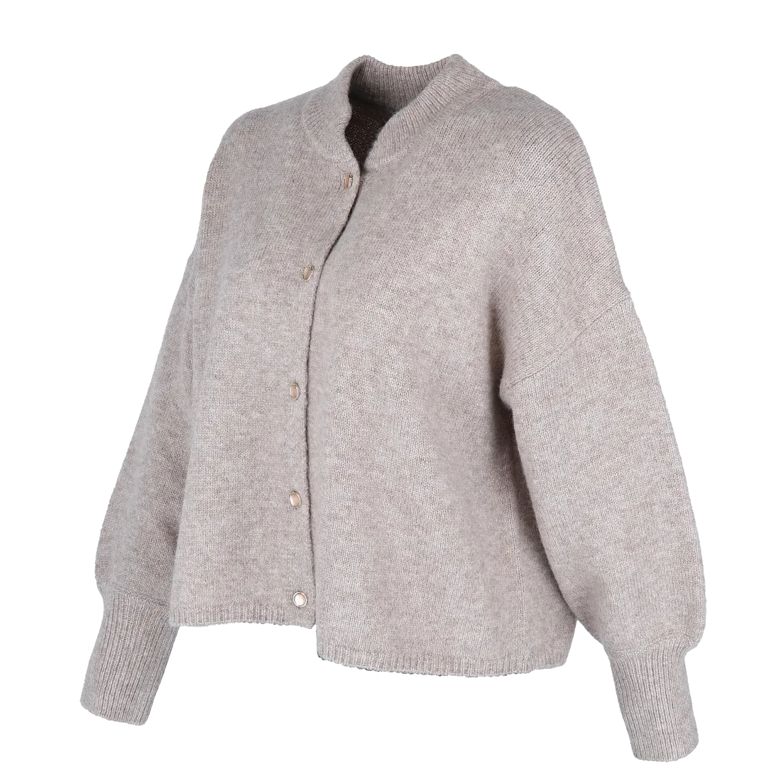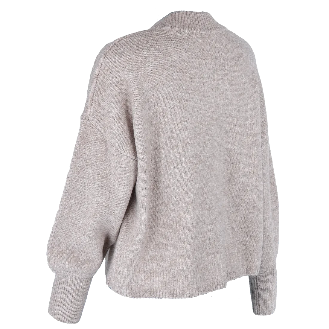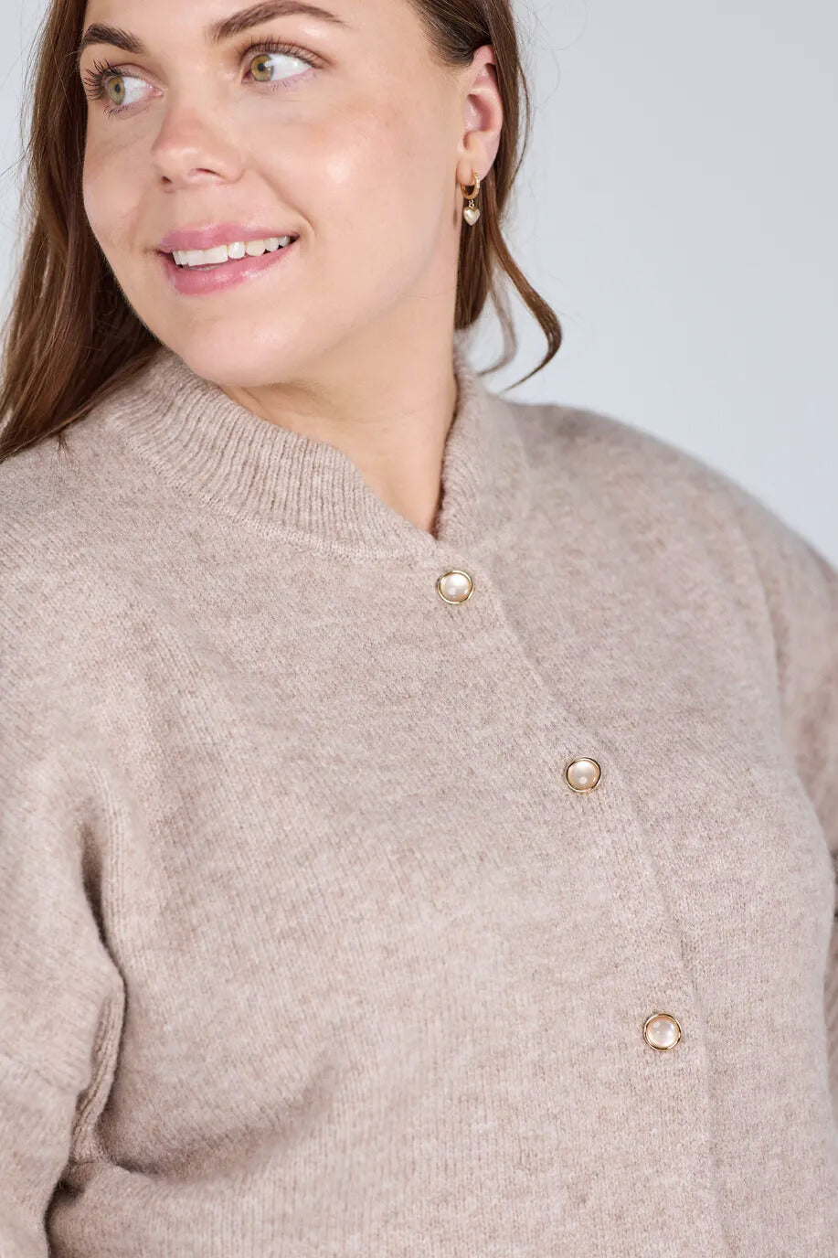 En myk og varm cardigan med feminine detaljer. Den har rund hals, ribbestrikkede kanter og en rett, litt kortere passform som gjør den enkel å style.