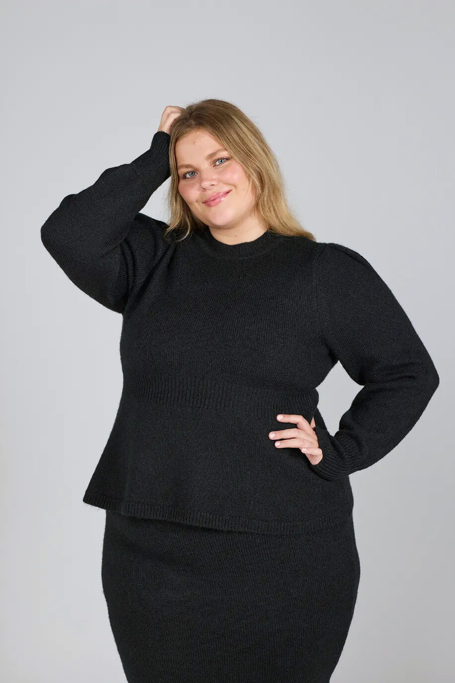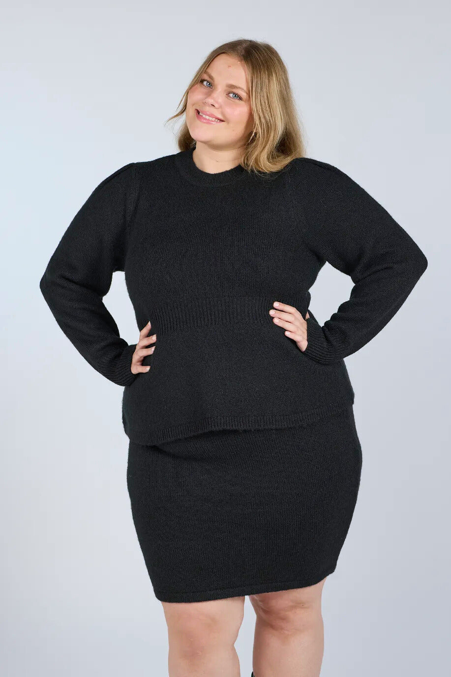 Kathrine Strikkegenser Peplum - Svart