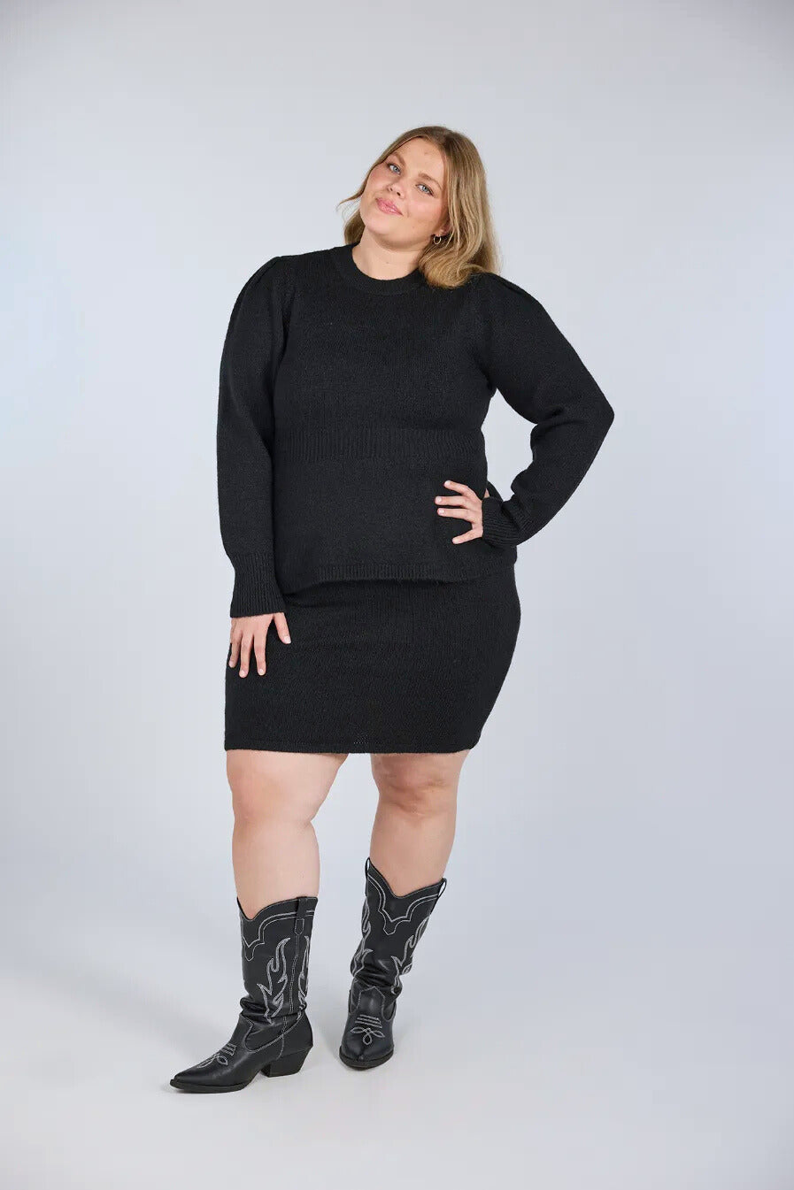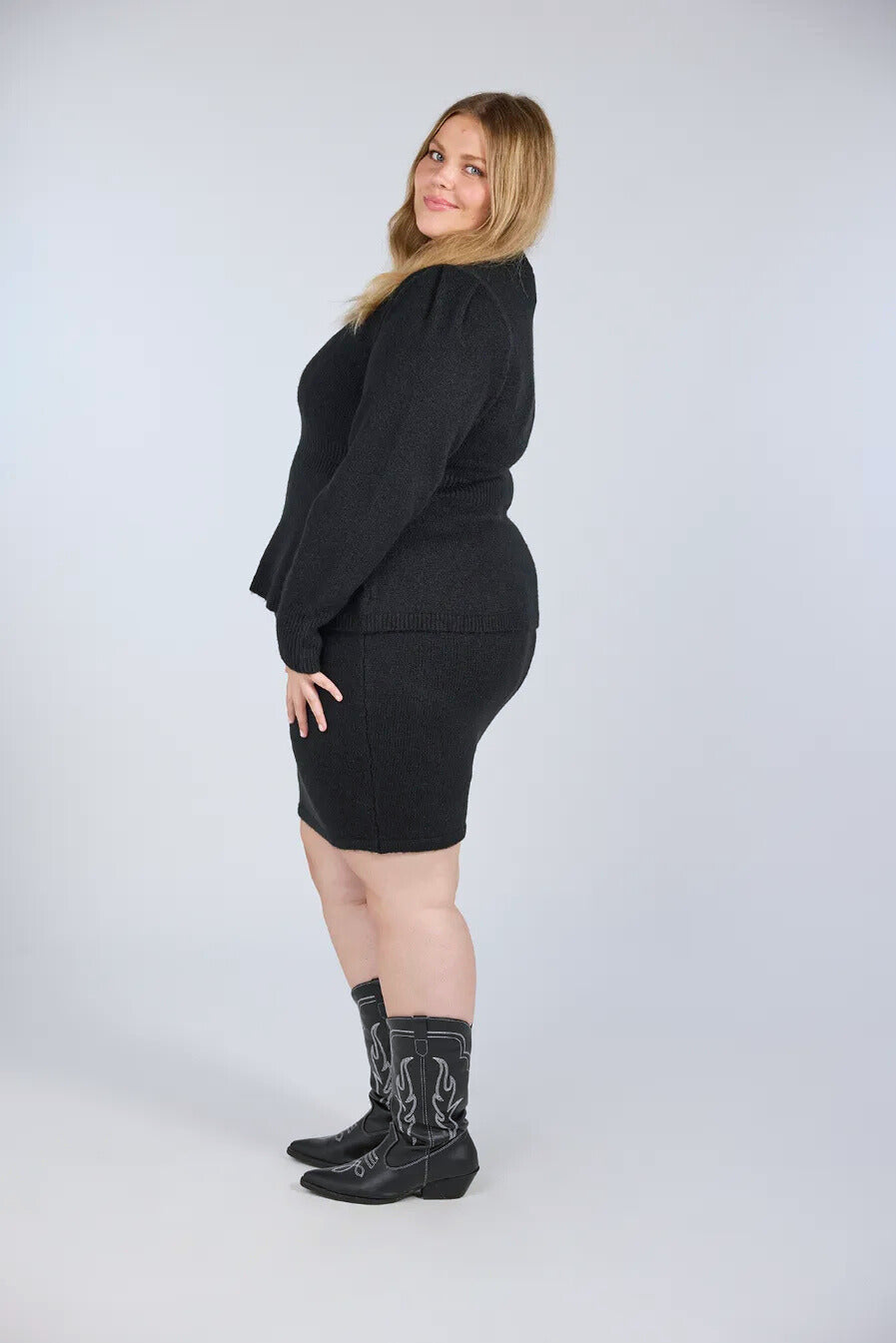 Blyantskjørtet i samme kolleksjon passer perfekt til denne genseren. Passer også veldig godt med bukser, jeans og andre skjørt.